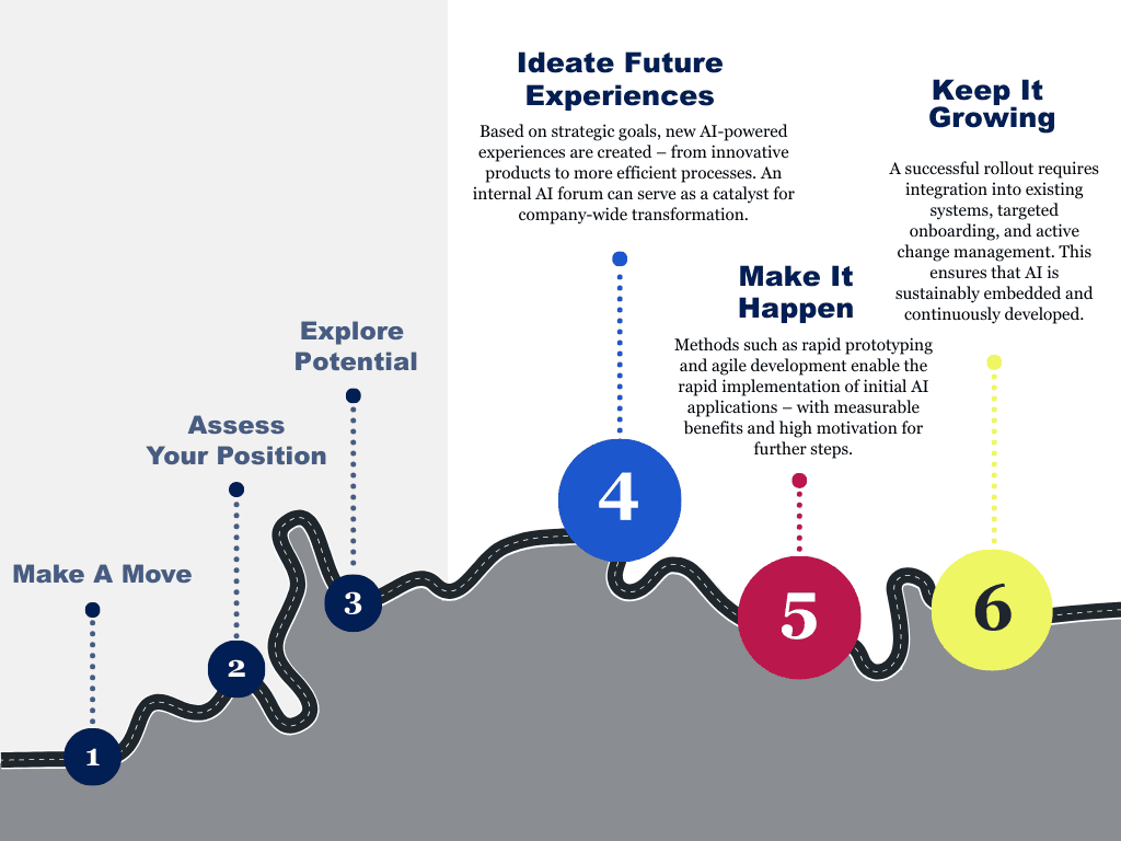 Every successful change begins with understanding: we analyze processes before implementing technologies. This ensures that digitalization and AI are not only introduced but also used effectively. Technologies are enablers, not replacements. Our goal: to empower employees, make processes smarter, and build more resilient organizations.